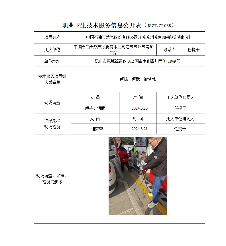 中国石油天然气股份有限公司江苏苏州苏南加油站定期检测报告