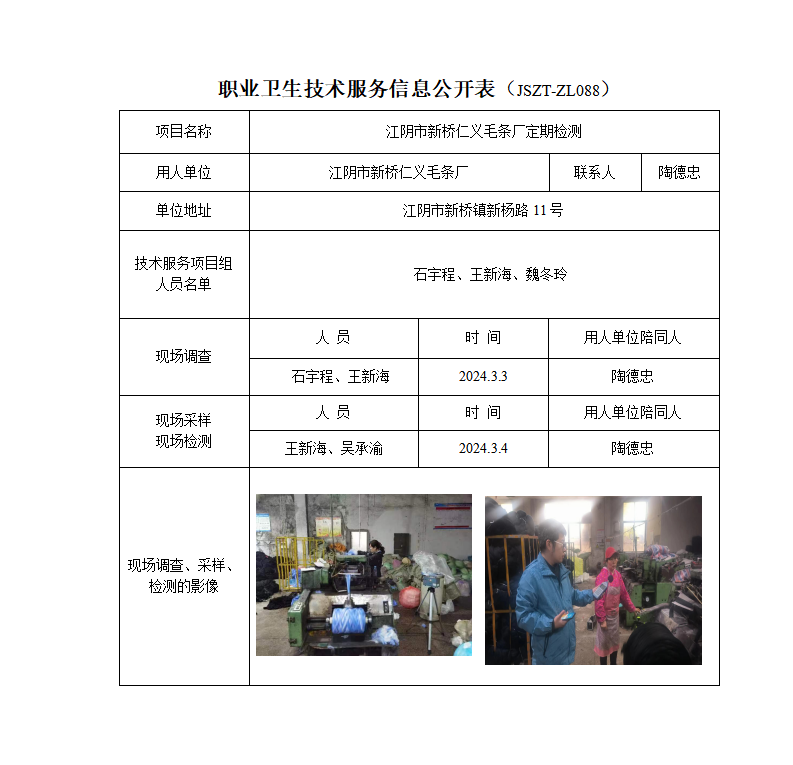 江阴市新桥仁义毛条厂定期检测报告