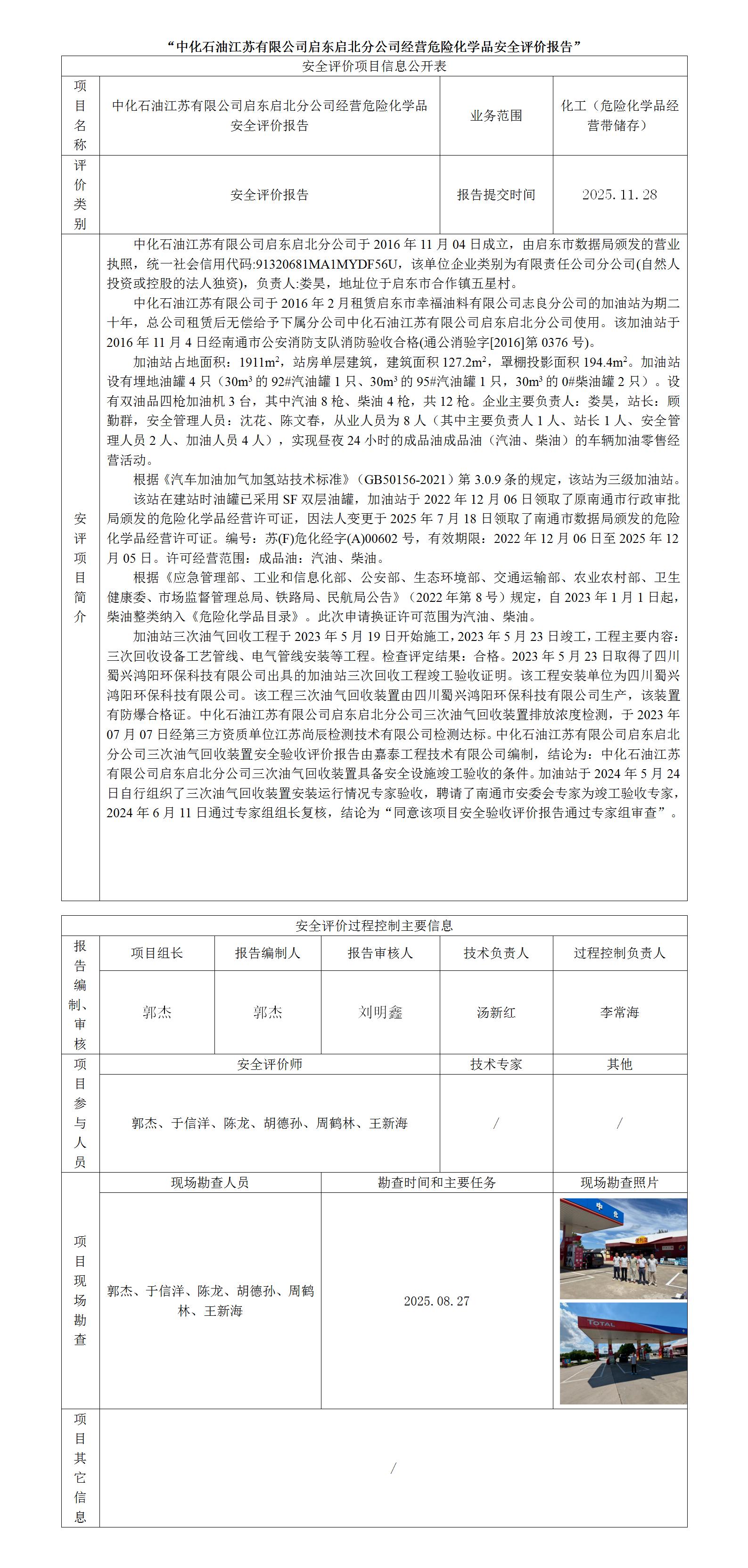 中化石油江苏有限公司启东启北分公司经营危险化学品安全评价报告