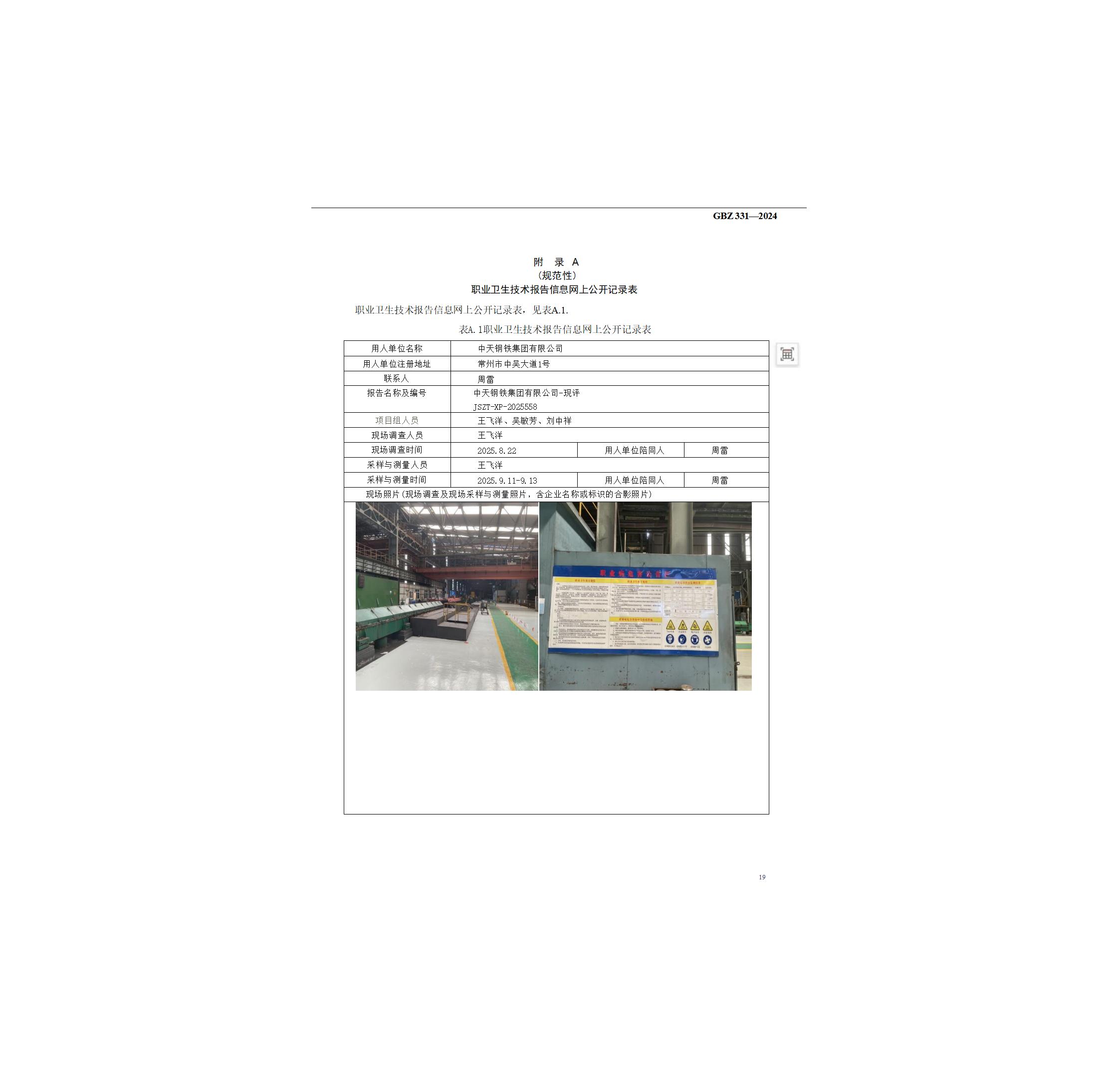 中天钢铁集团有限公司(炼铁单元)职业病危害