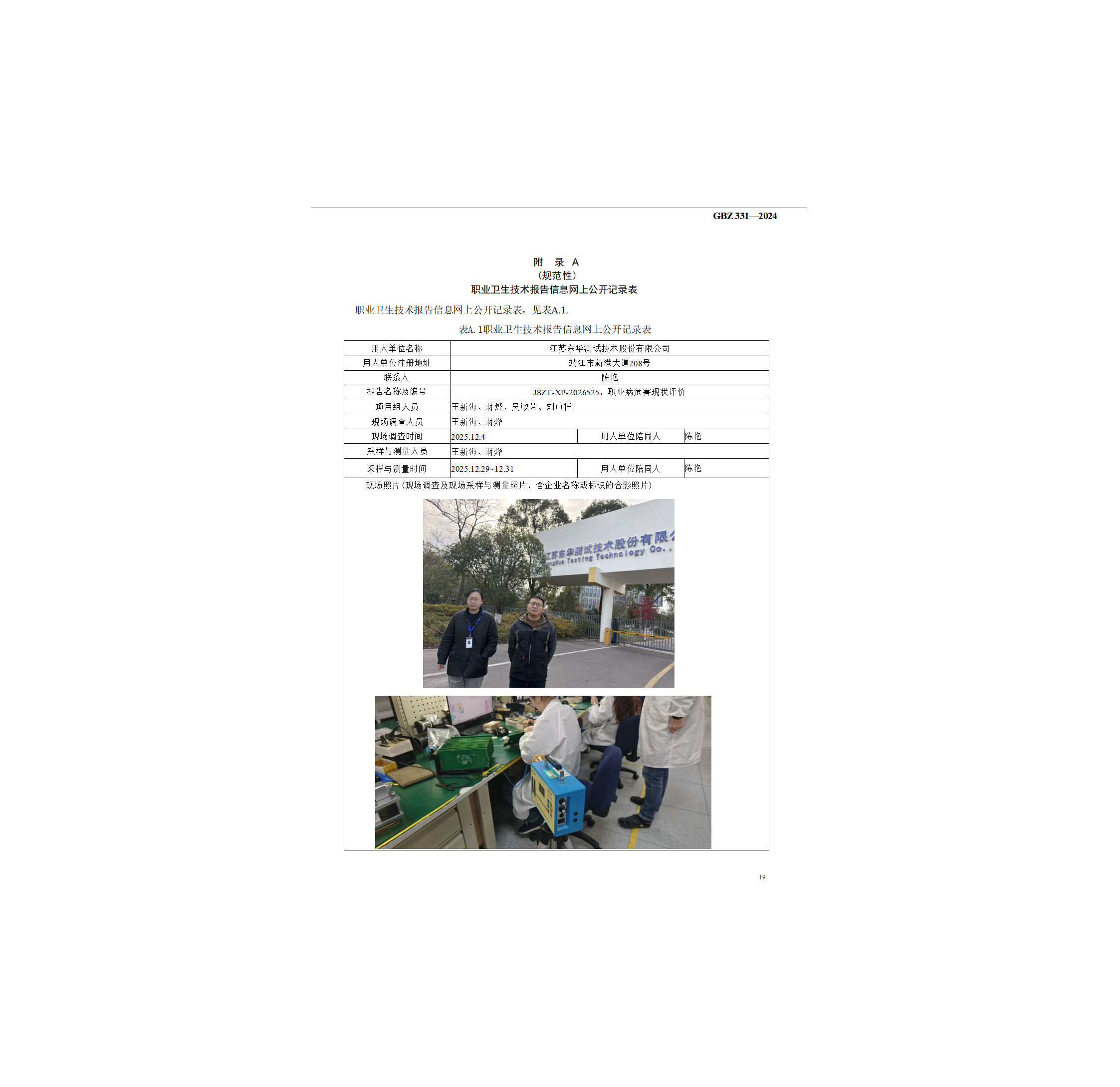 江苏东华测试技术股份有限公司职业病危害现状评价