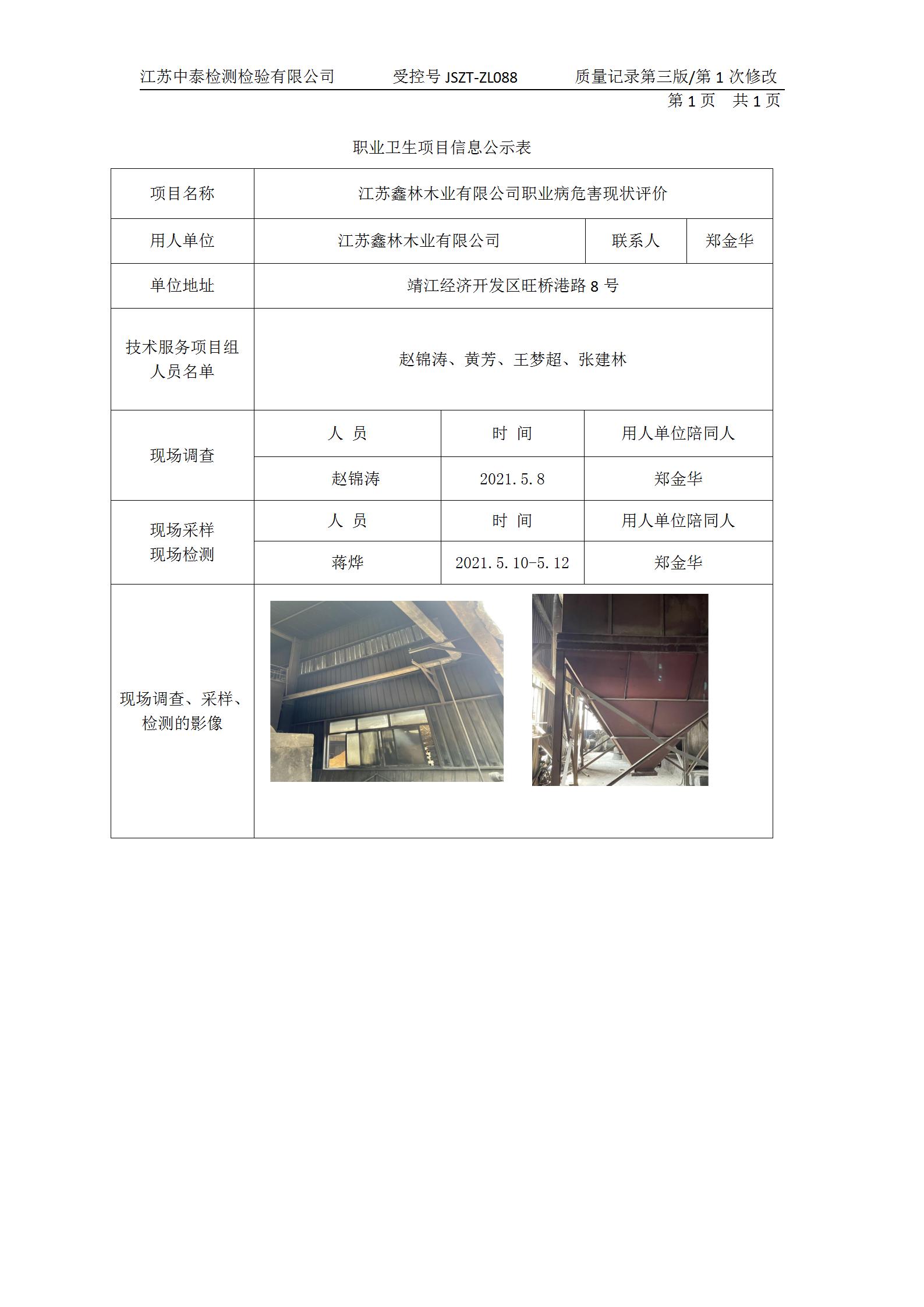 江苏鑫林木业有限公司职业病危害现状评价_中泰检测检验