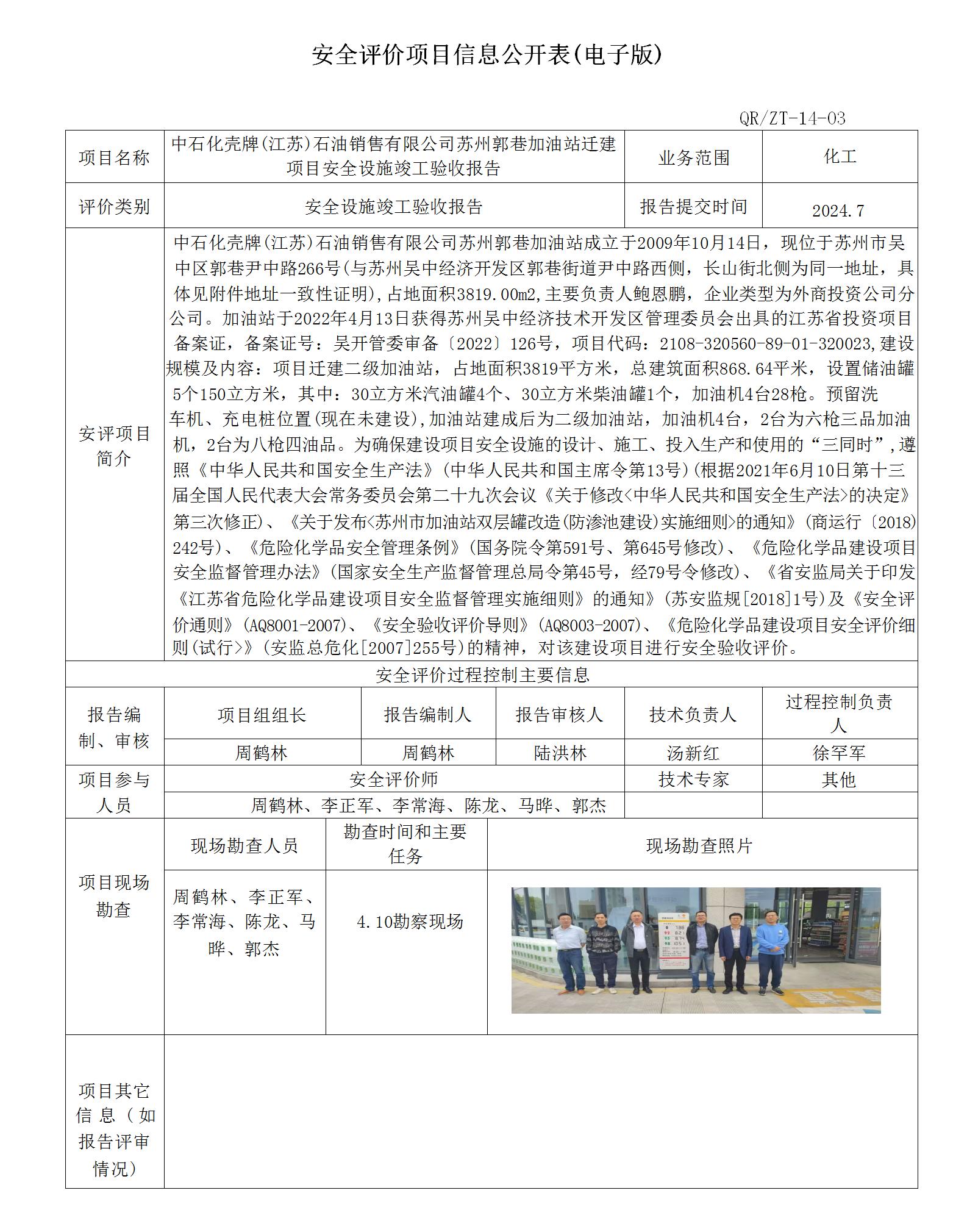 中石化壳牌(江苏)石油销售有限公司苏州郭巷加油站迁建 项目安全设施竣工验收报告