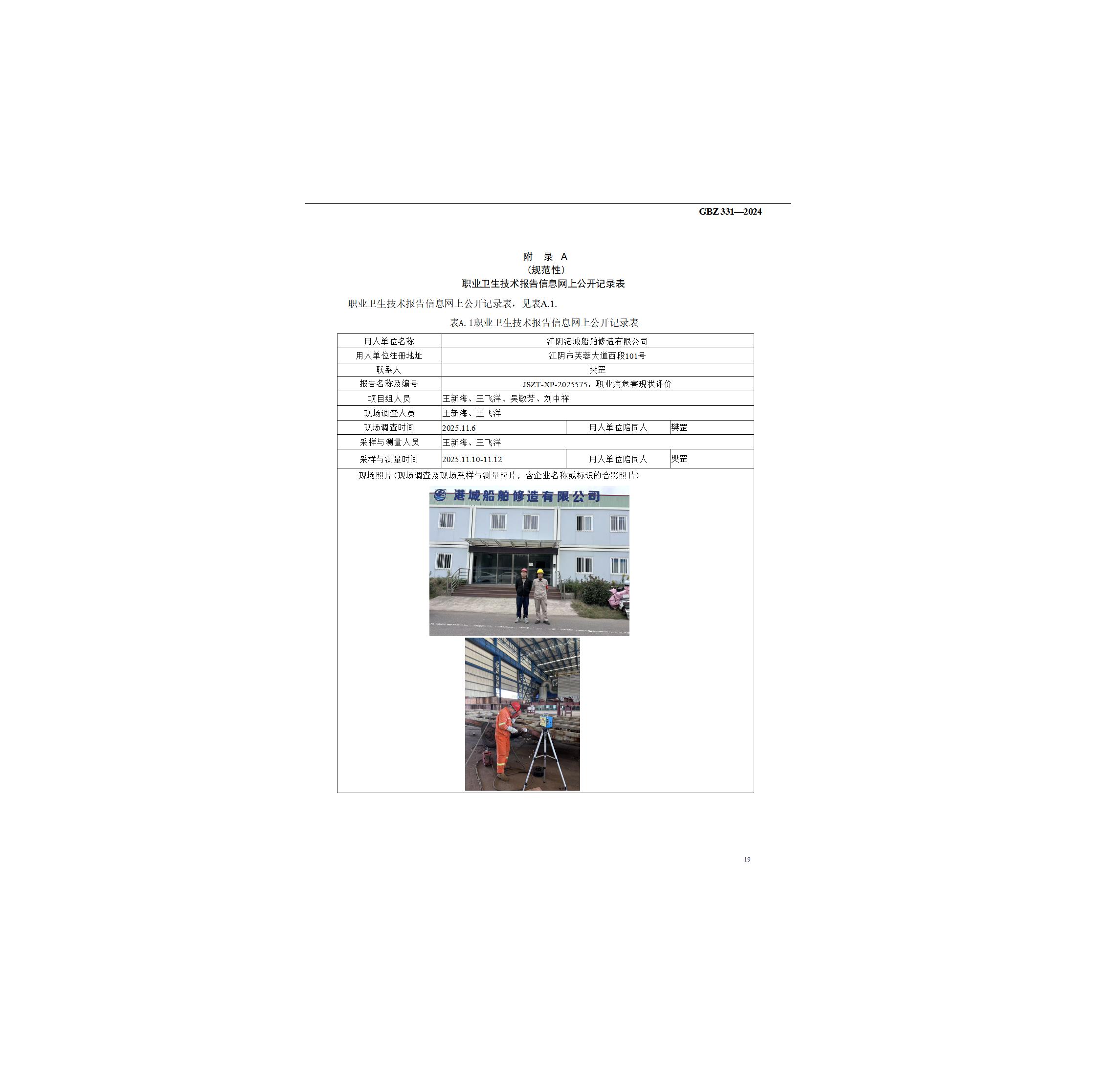 江阴港城船舶修造有限公司职业病危害现状评价_中泰检测检验
