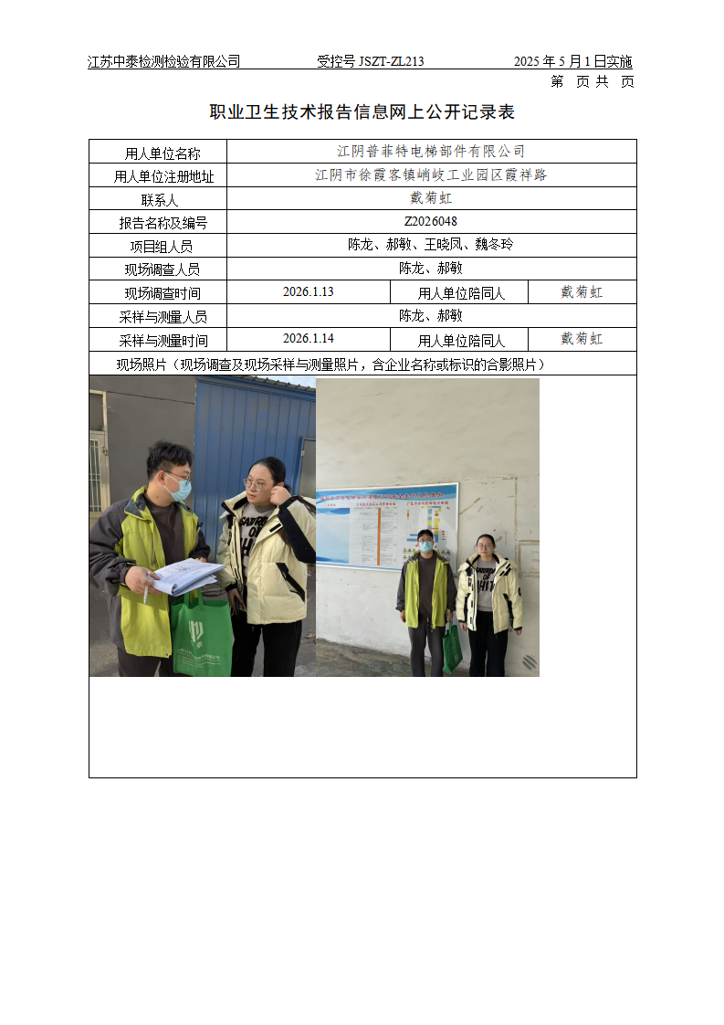 江阴普菲特电梯部件有限公司_中泰检测检验