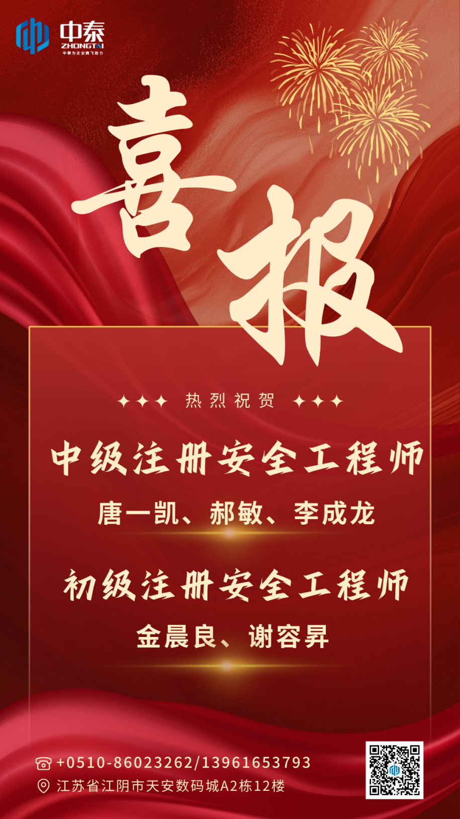 喜报 | 热烈祝贺我公司5人通过注册安全工程师资