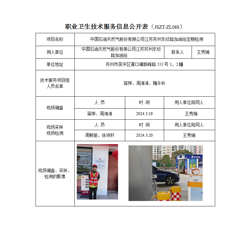 中国石油天然气股份有限公司江苏苏州东欣路加油站定期检测报告