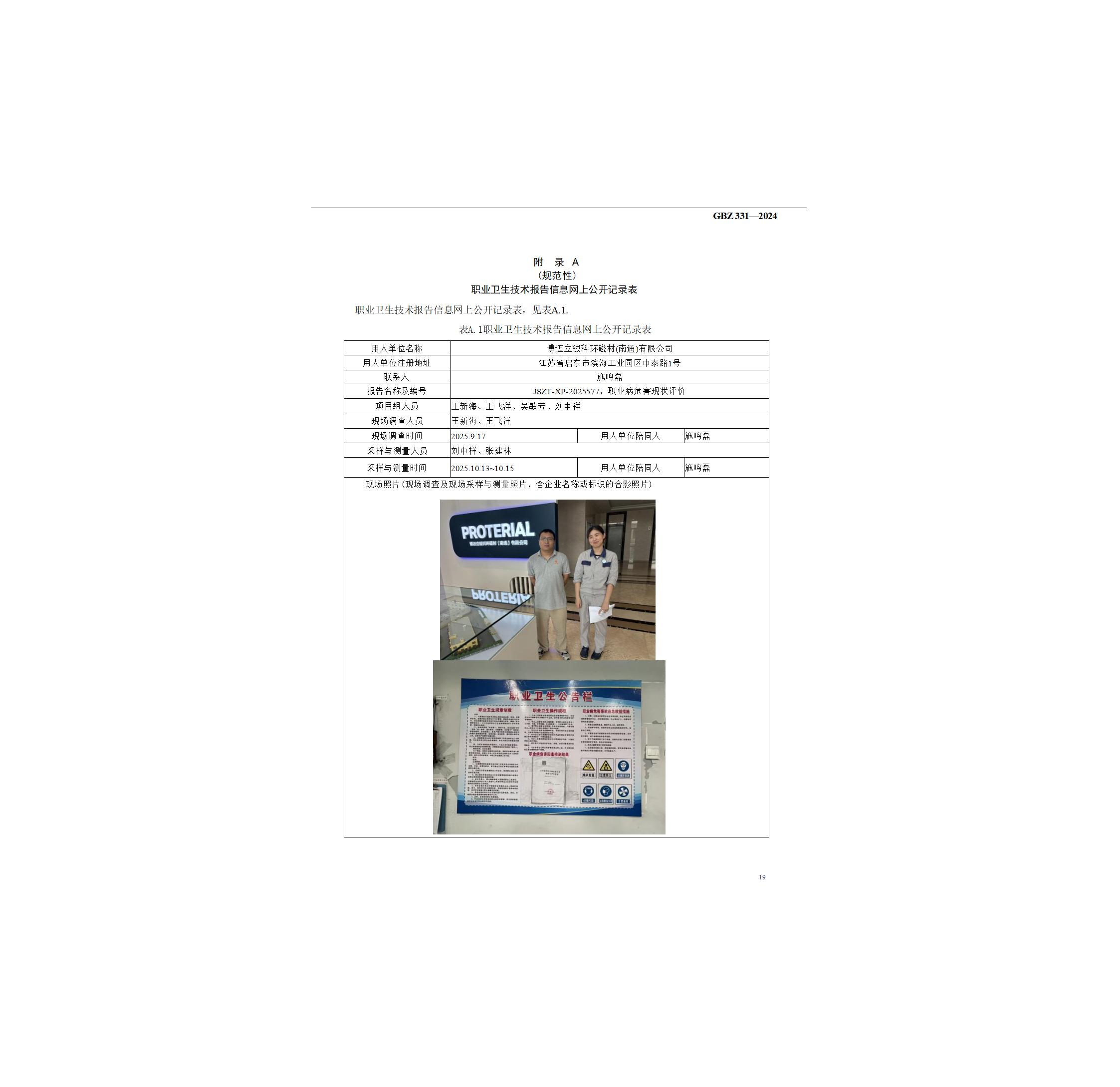 博迈立铖科环磁材(南通)有限公司职业病危害现状评价