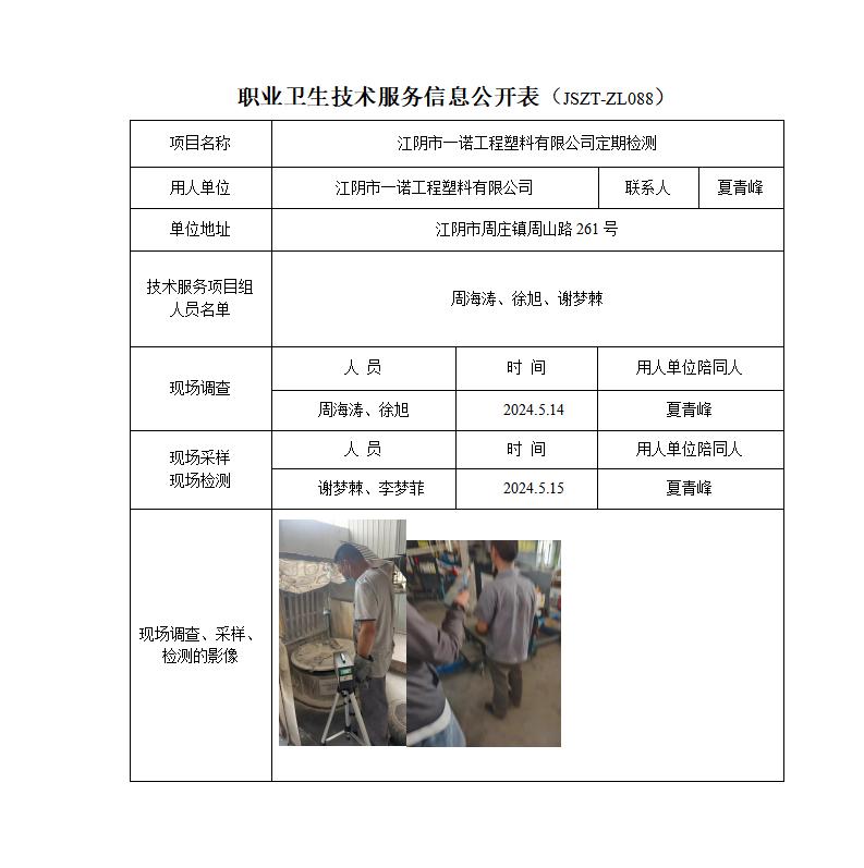江阴市一诺工程塑料有限公司定期检测_中泰检测检验