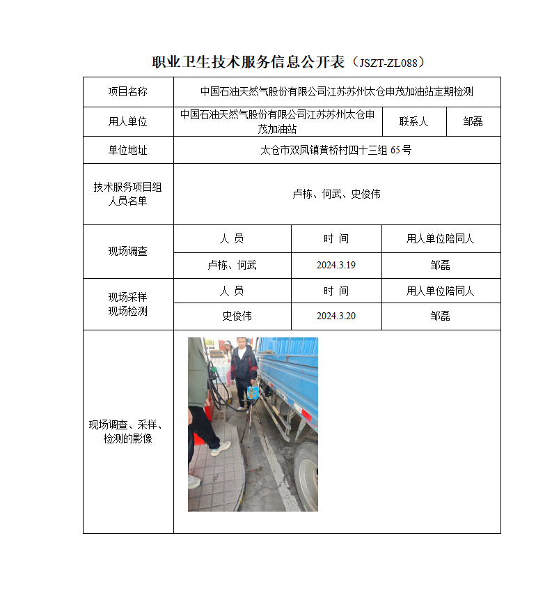 中国石油天然气股份有限公司江苏苏州太仓申茂加油站定期检测