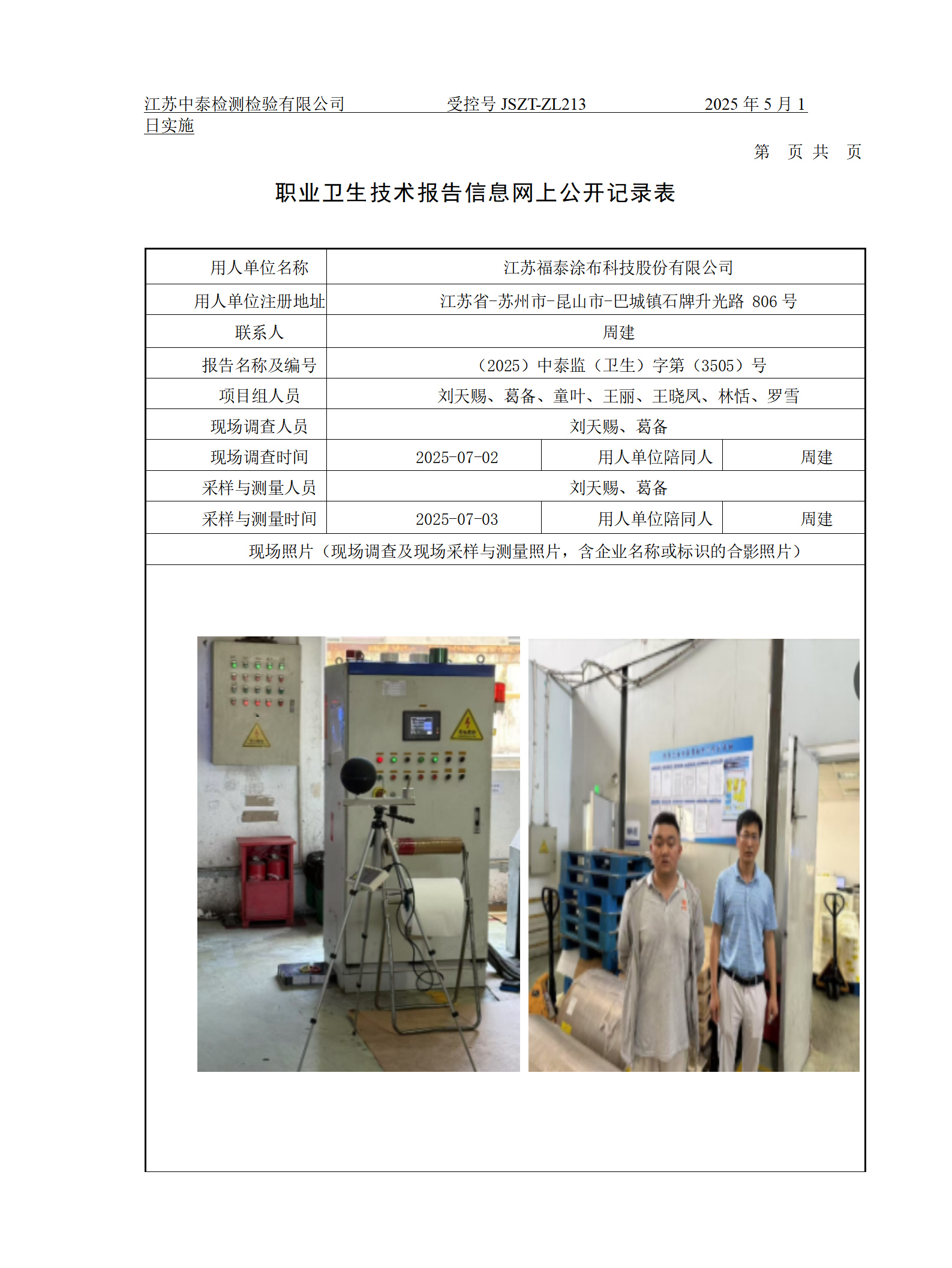 江苏福泰涂布科技股份有限公司_中泰检测检验
