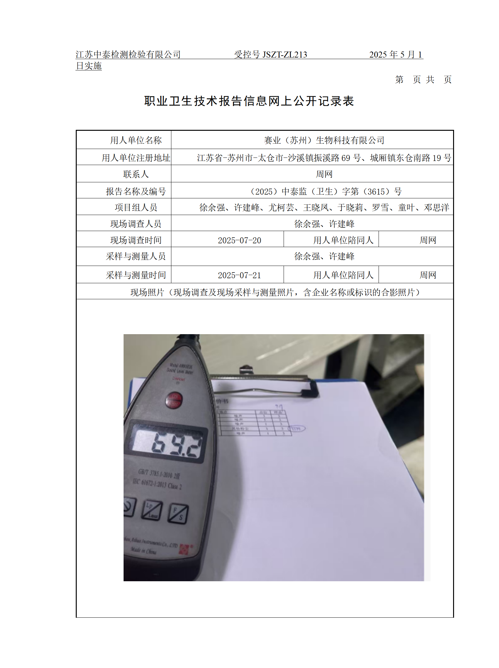 检测报告公示