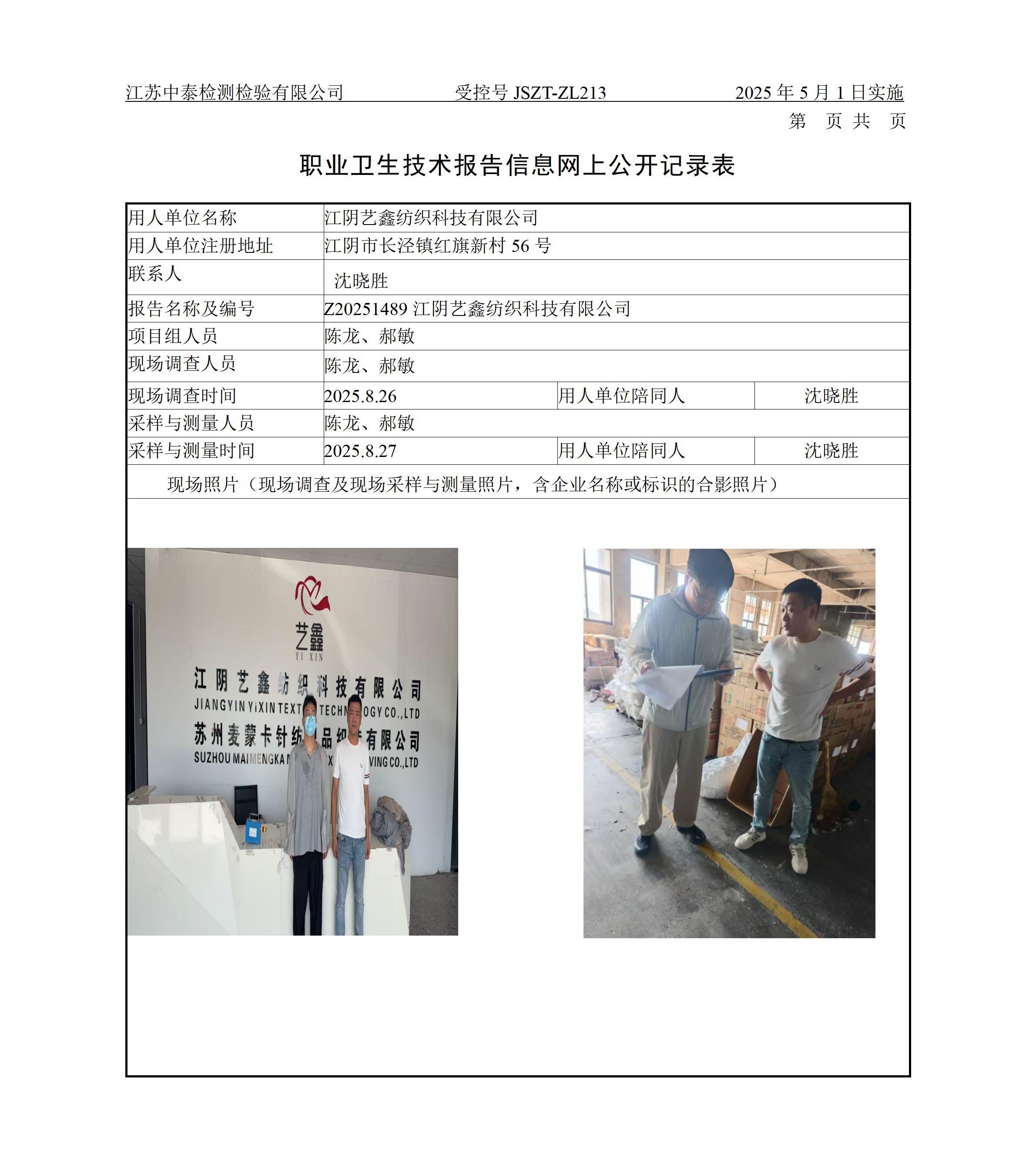 江阴艺鑫纺织科技有限公司_中泰检测检验