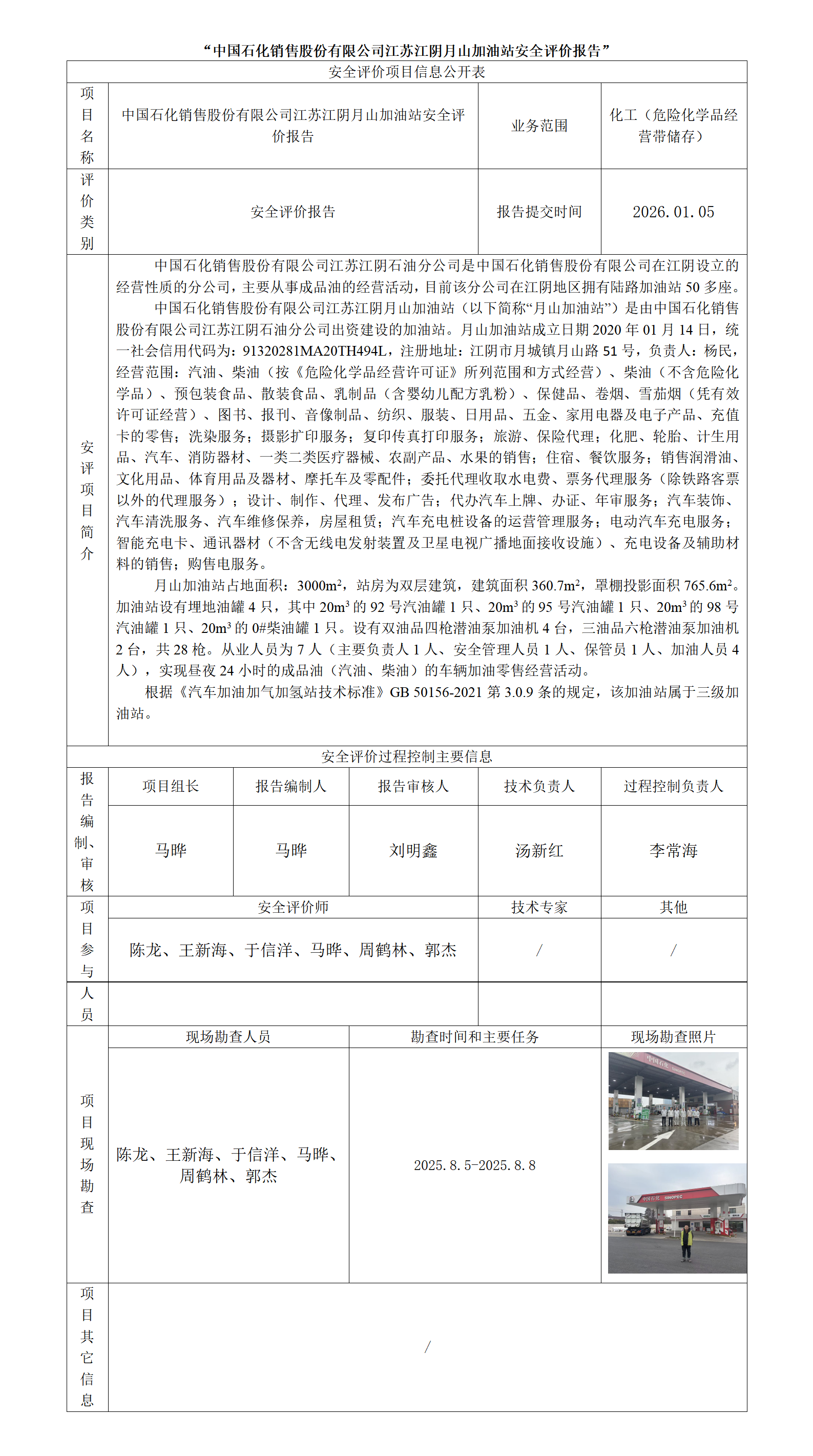 中国石化销售股份有限公司江苏江阴月山加油站安全评价报告