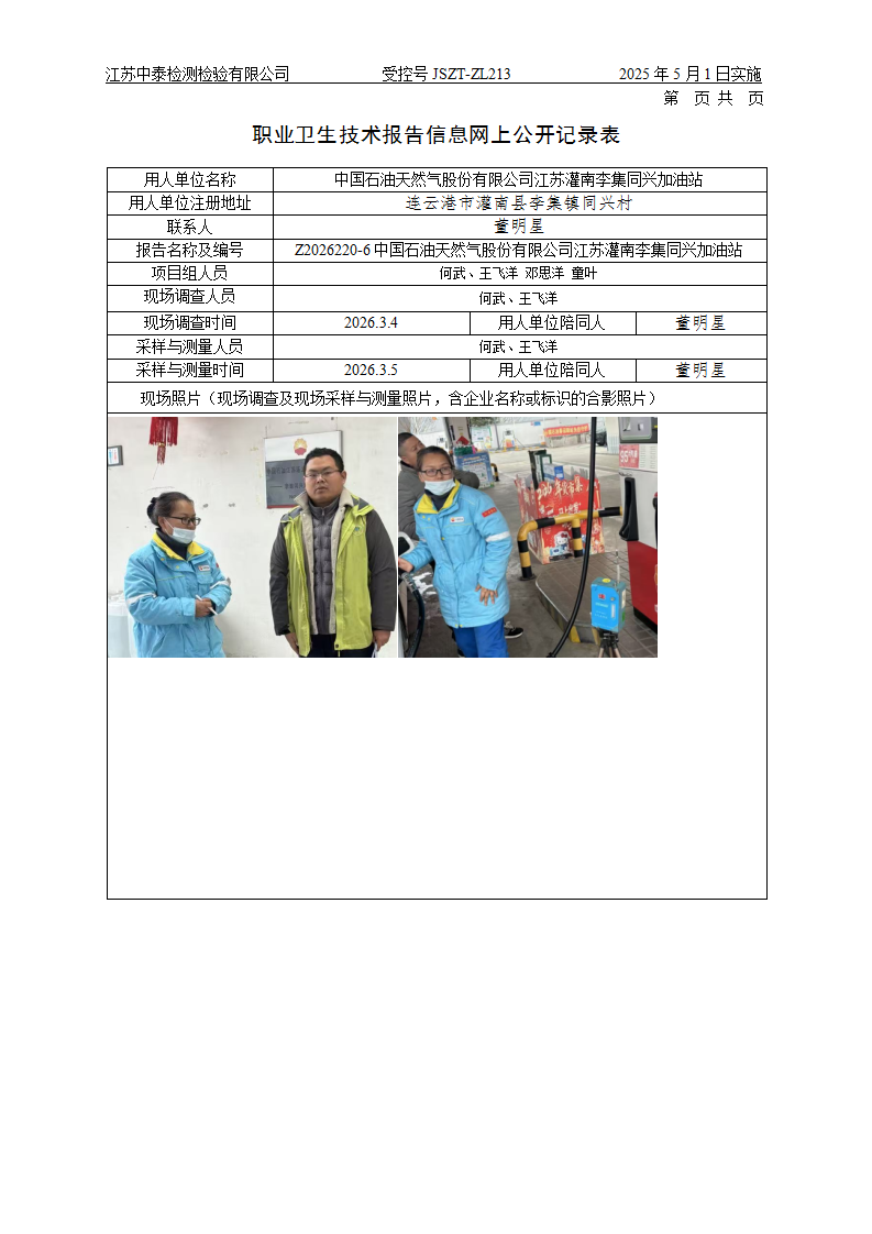 中国石油天然气股份有限公司江苏灌南李集同兴_中泰检测检验