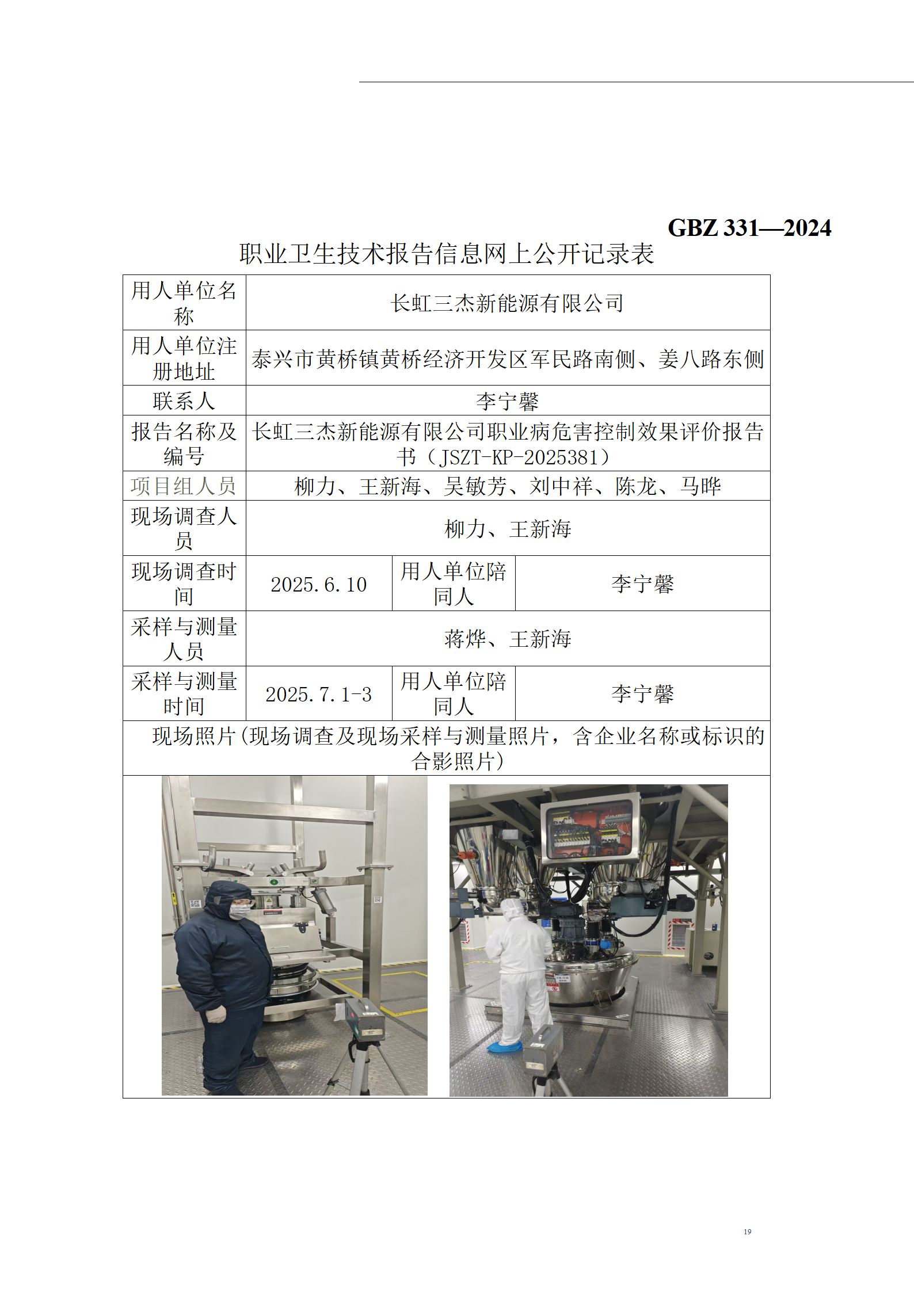 长虹三杰新能源有限公司职业病危害控制效果评_中泰检测检验